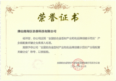 2020年浩泰科技榮獲佛山市鋁加工協(xié)會(huì)頒發(fā)的“積極貢獻(xiàn)獎(jiǎng)”。