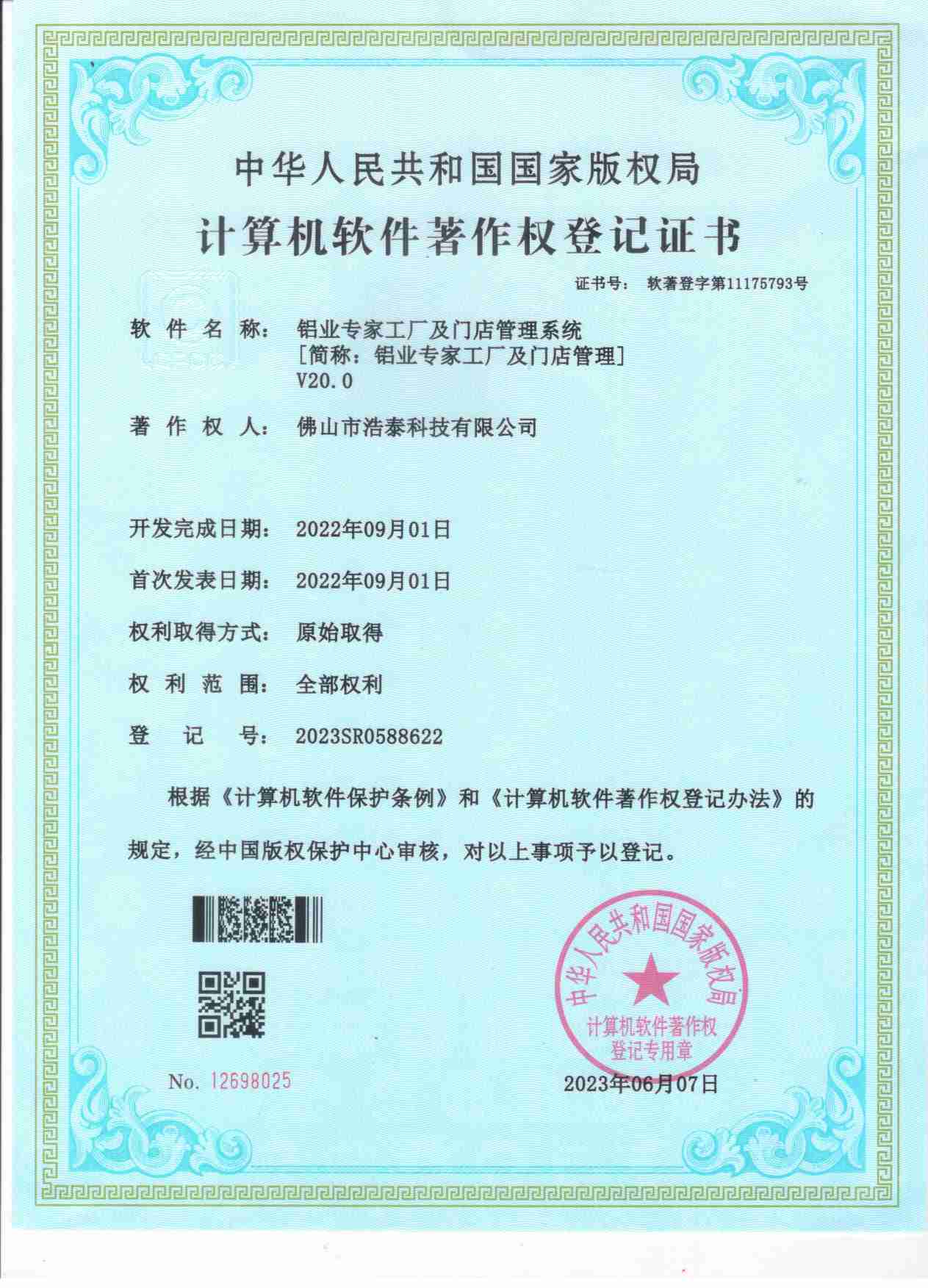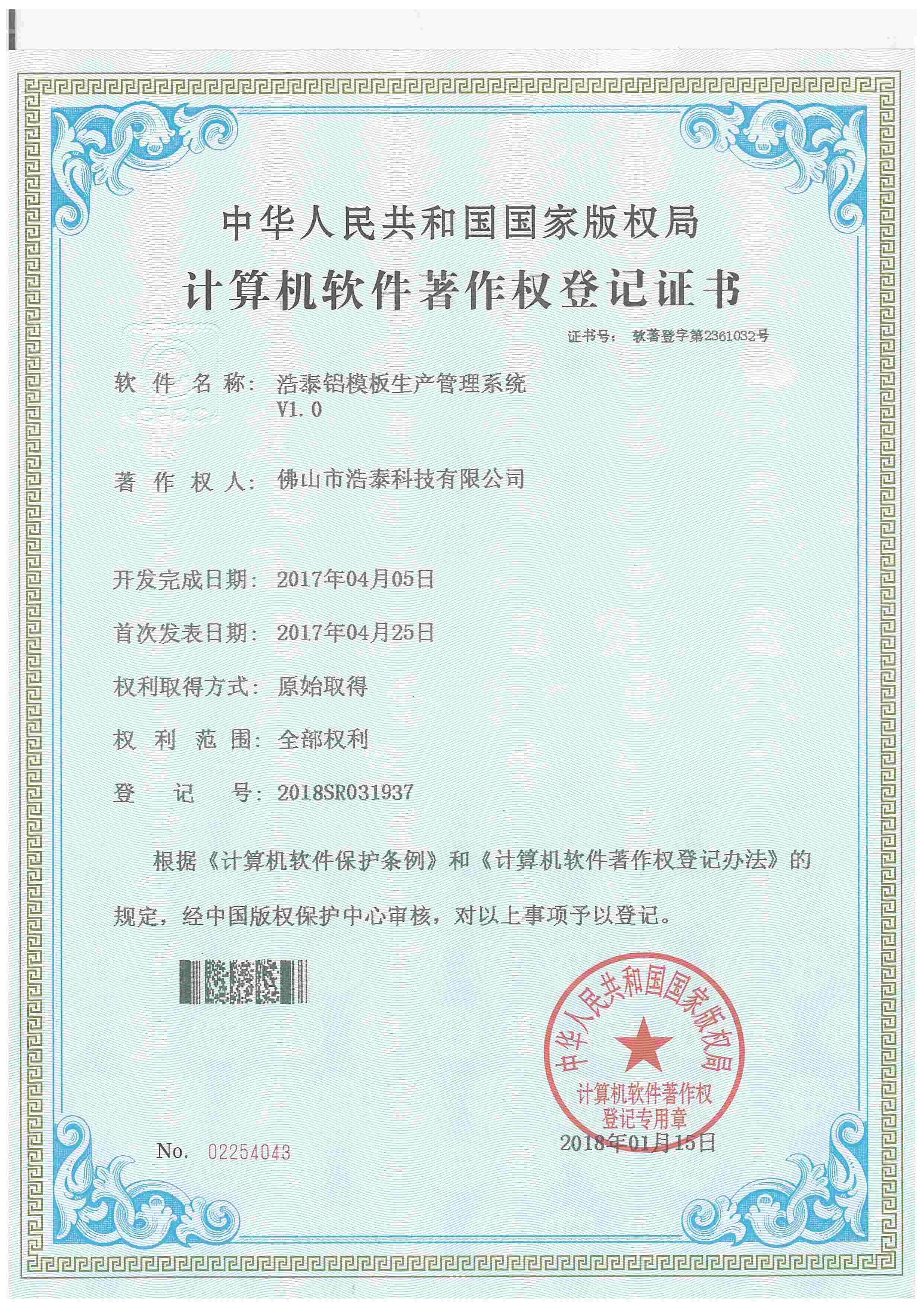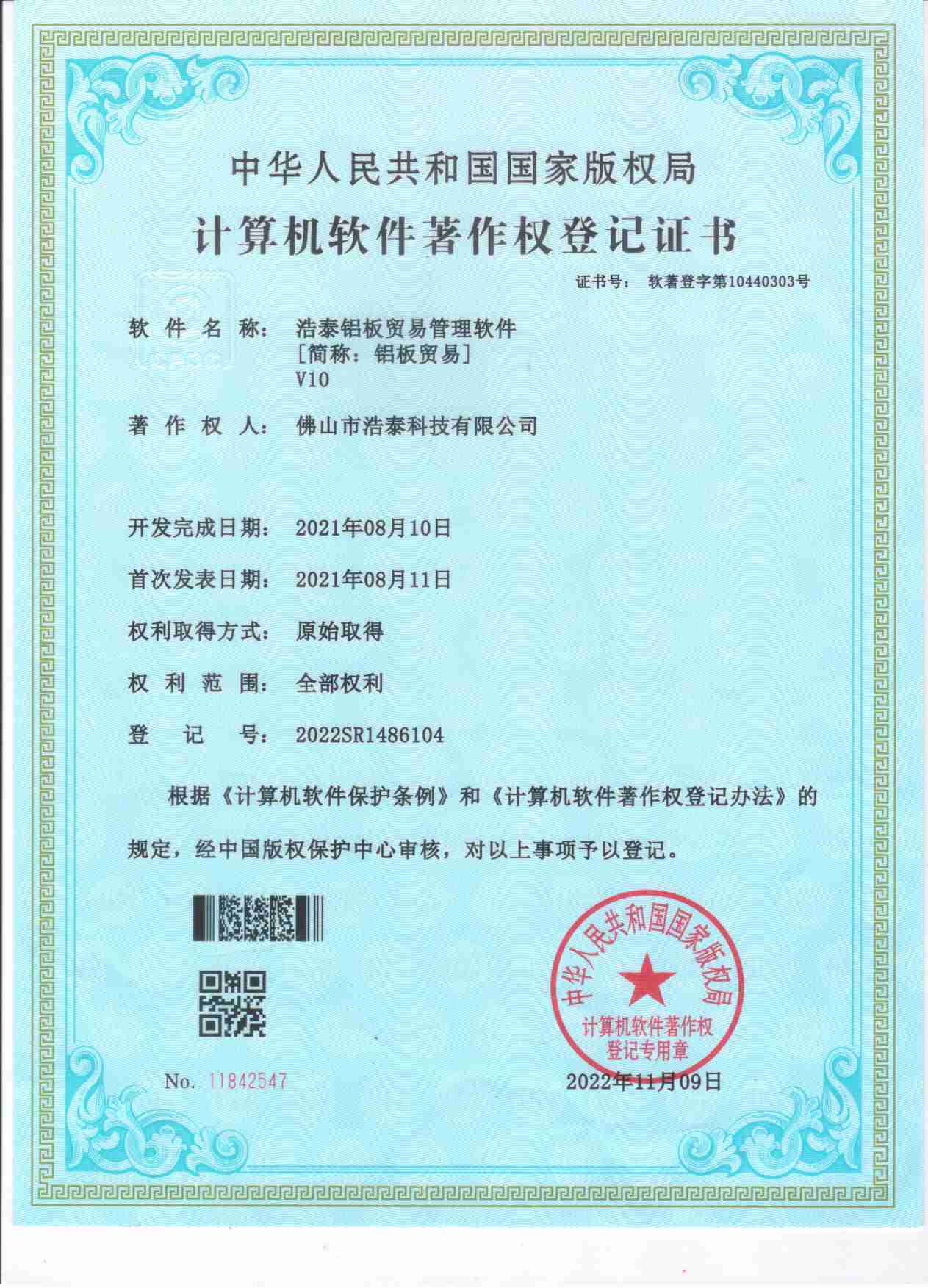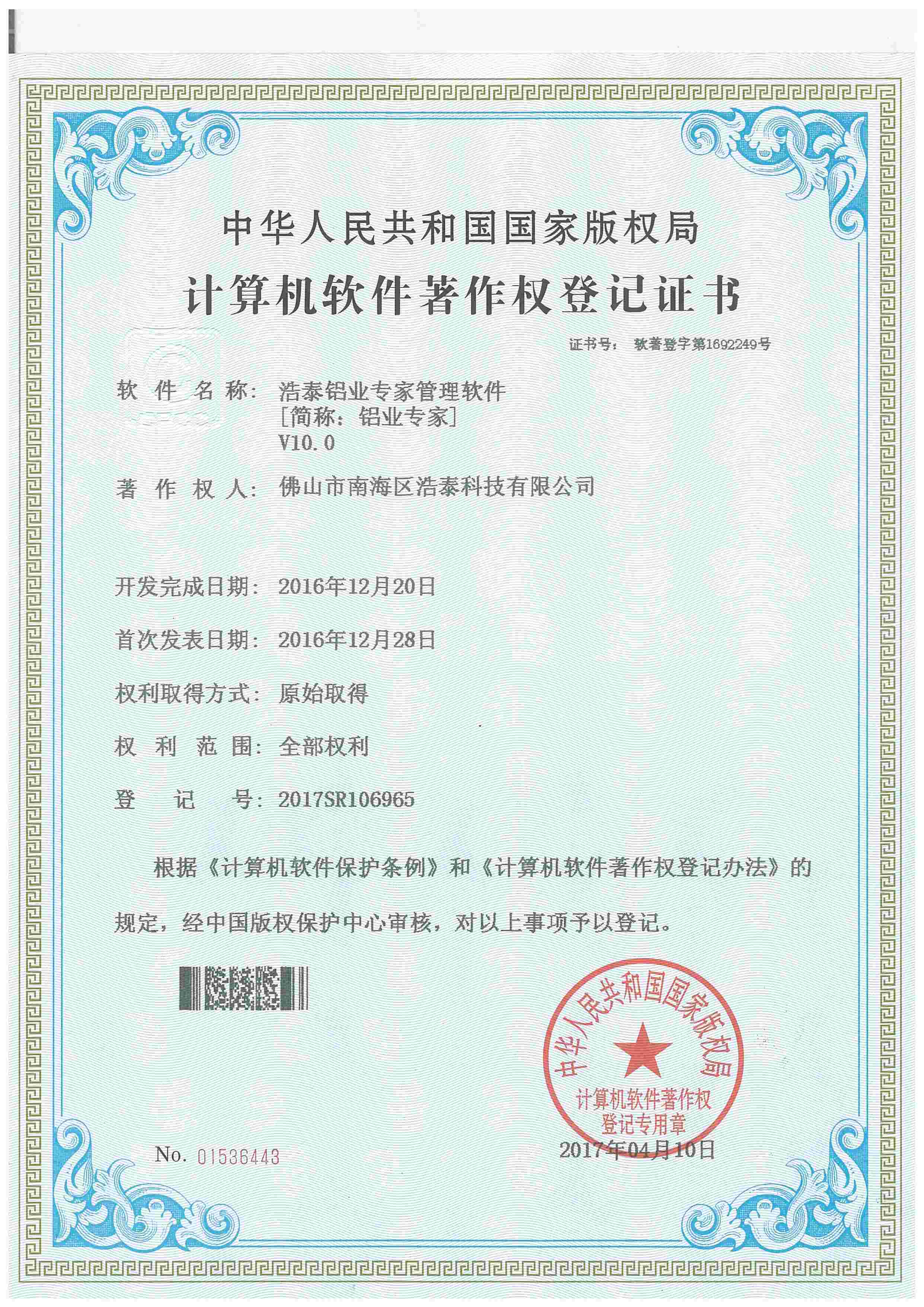 浩泰鋁箔專家系統(tǒng)V1.0,浩泰鋁商家管理軟件V1.0,浩泰鋁模板生產(chǎn)管理系統(tǒng)V1.0,浩泰項(xiàng)目管理系統(tǒng)V1.0,浩泰訂單中心管理軟件V1.0,浩泰鋁業(yè)專家工業(yè)版管理軟件V1.0,浩泰建材租賃信息系統(tǒng)V1.0,浩泰啟航平臺(tái)V2.0,浩泰移動(dòng)辦公中心軟件V1.0,10個(gè)軟件商標(biāo)注冊(cè)成功,鋁業(yè)專家云端ERP上線,同時(shí)我司取得高新技術(shù)企業(yè)榮譽(yù)!
