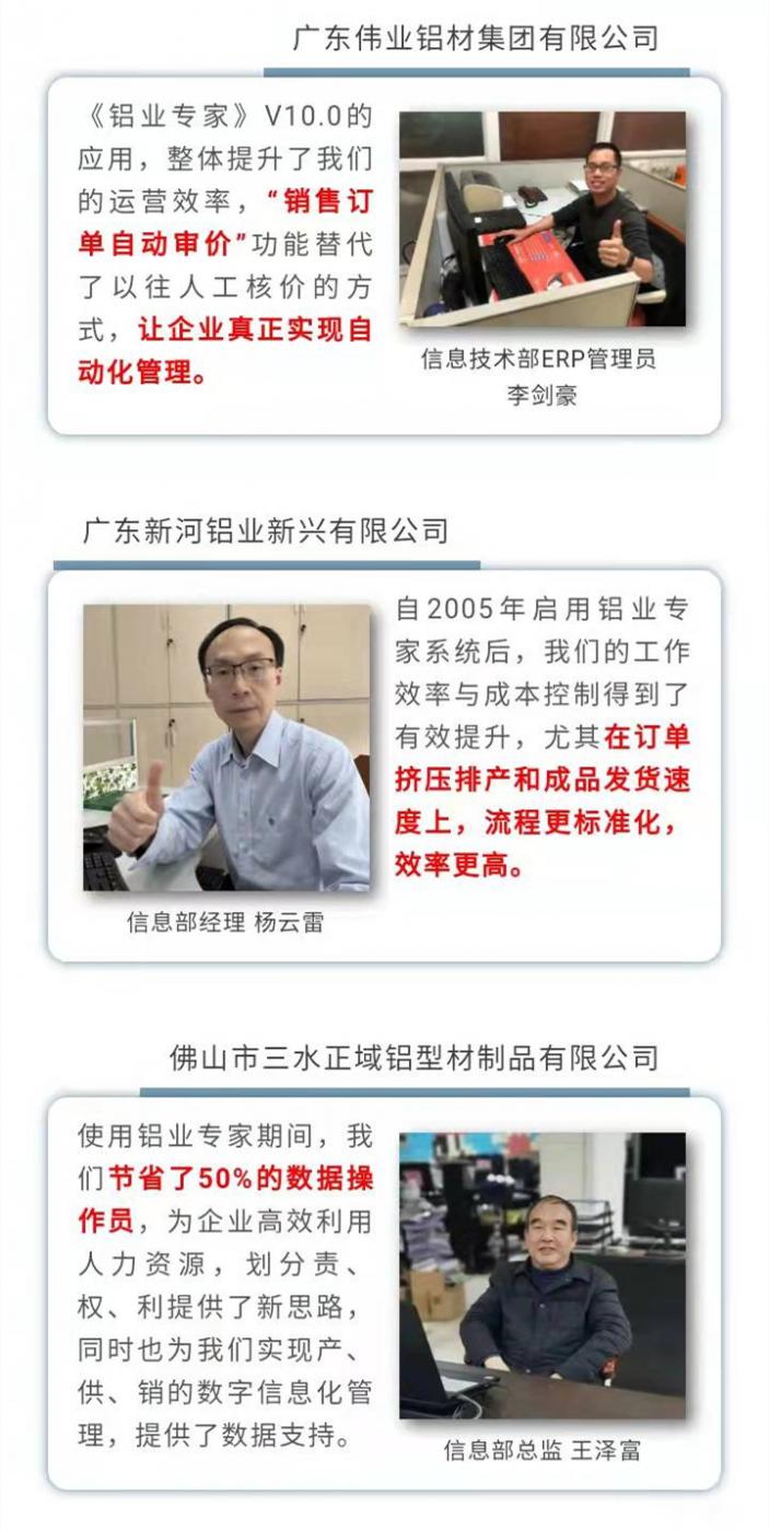瞄準這個行業“Bug”,浩泰科技開始了鋁型材ERP系統研發之路:從2004年的《鋁業專家》,到后來隨著行業發展與時代潮流傾而向延伸出的《鋁板專家》、《鋁箔專家》、《鋁商家》、《模具專家》、《鋁業專家-門窗版》、《鋁業專家手機版》等新產品,每一款都與鋁型材行業息息相關。長期深耕鋁型材領域,為浩泰贏得了穩定且長遠的發展局面,可以說,浩泰科技產品研發的背后,折射的是國內鋁型材行業信息化的發展水平。